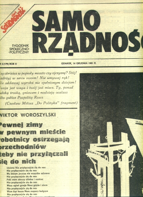 Stan wojenny zastał mnie u boku Lecha Bądkowskiego w Tygodniku „SAMORZĄDNOŚĆ”. Miałem znaczną satysfakcję – jako sekretarz redakcji – uczestniczyć w tworzeniu tego pisma od początku. I w niezłym towarzystwie...