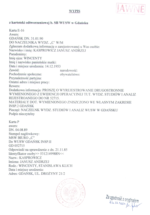 Zaproszenie IPN do lektury na własny temat miało dla mnie zamknąć temat po ćwierci wieku. I zamknęło. Nie poznałem nazwisk bliskich donosicieli, ale cierpieć z tego powodu nie zamierzam. Mam „czyste akta”, nikt mi „gęby” nie dorobi. I to jest ważne.